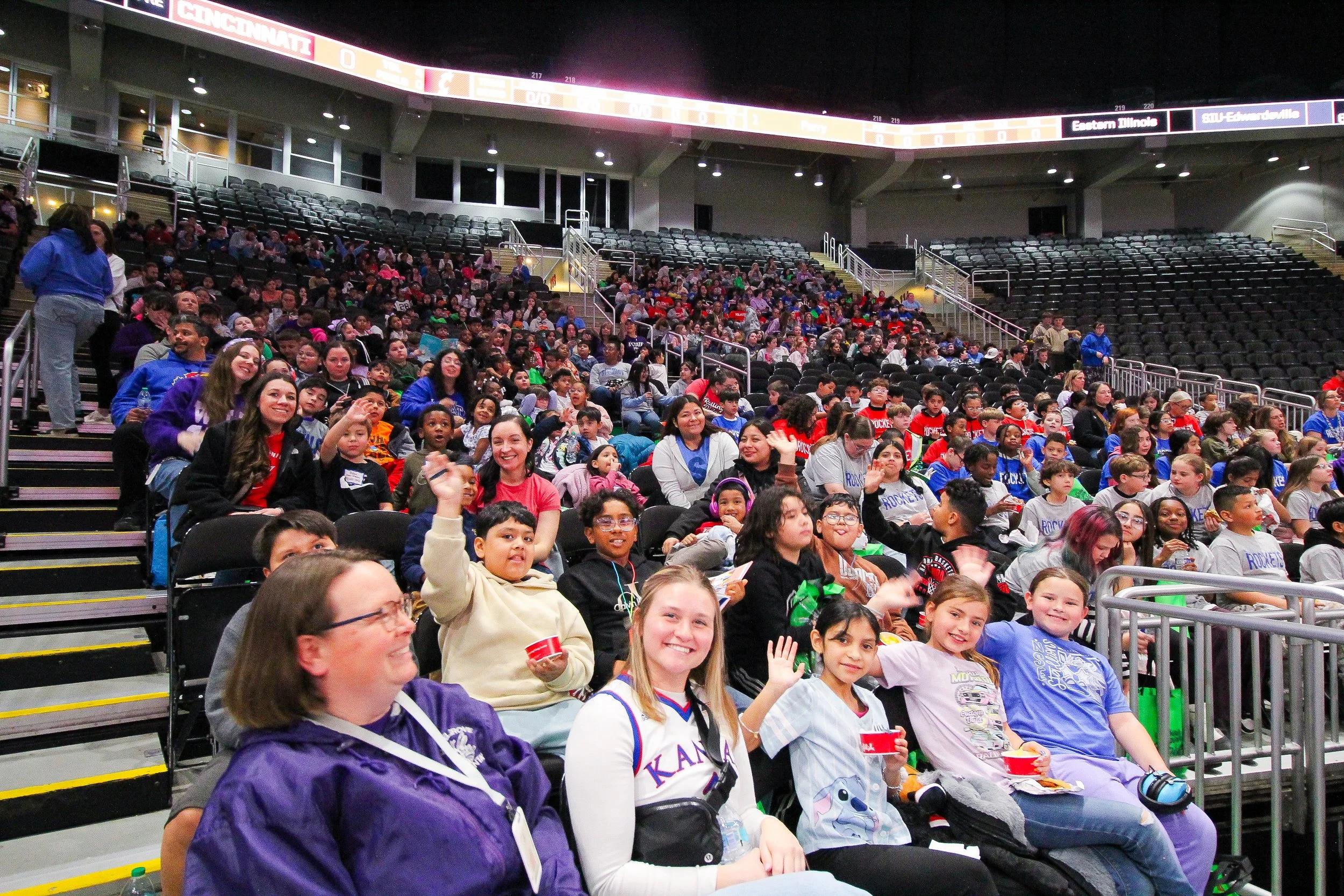 Along with the electric competition, WIN for KC partnered with the Big 12 Conference to promote literacy and health with the annual Reading & Fitness Challenge presented by Evergy. Over 1,800 local elementary school kids attended the 1st and 2nd round games, received free lunches and books, and experienced the excitement at the T-Mobile Center.